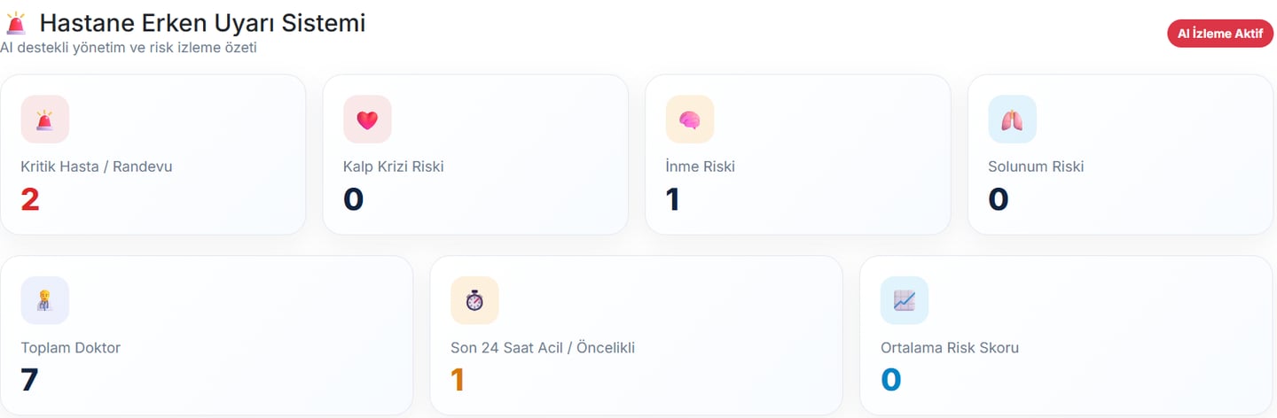 Yapay zeka algoritmaları sayesinde hastaların mevcut verileri anlık olarak değerlendirilir ve potansiyel riskler erken aşamada tespit edilir. Böylece sağlık ekipleri kritik durumları daha erken fark ederek gerekli müdahaleleri zamanında gerçekleştirebilir.