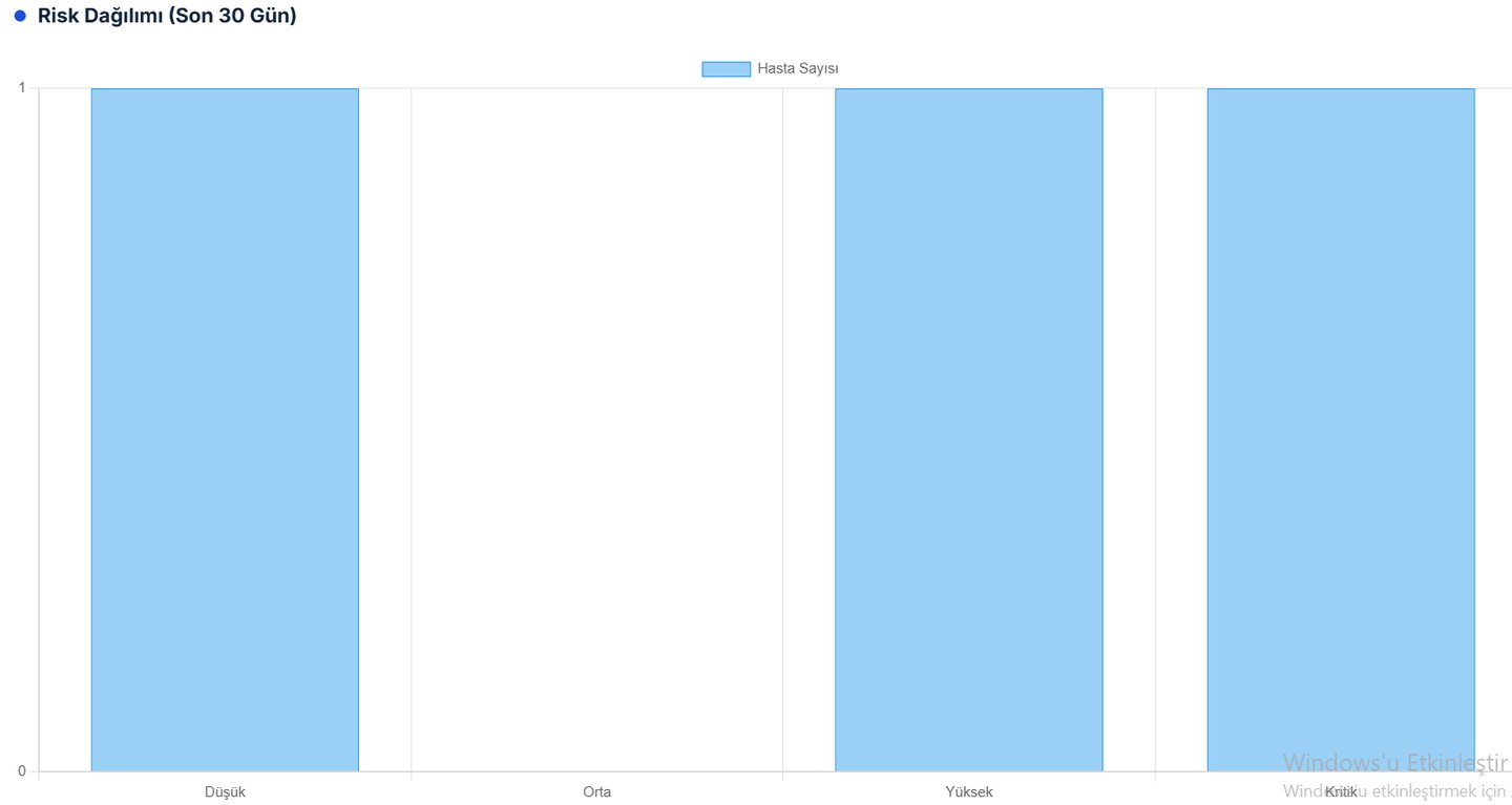 Risk seviyesi yükselen hastalar sistem tarafından otomatik olarak tespit edilir. Kritik durumlar için sağlık ekiplerine erken uyarı gönderilir.